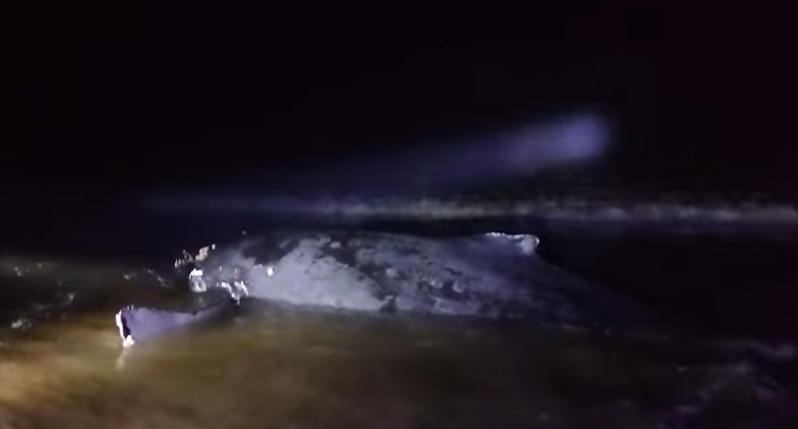 After local volunteers began to arrive, unidentified members of the stranding network and NOAA personnel visited the site in the evening but departed. The volunteers remained with the whale overnight, attempting to refloat it by pouring water on it and covering it with wet blankets. During the night, one volunteer even swam out to cut the entangling lines.