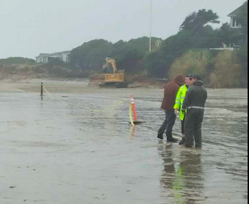 The excavator arrived. The company came in at its own expense, covered all the costs, and told its employees to volunteer. They waited for a few hours but were told their services would not be needed. They left sometime before 5 p.m.